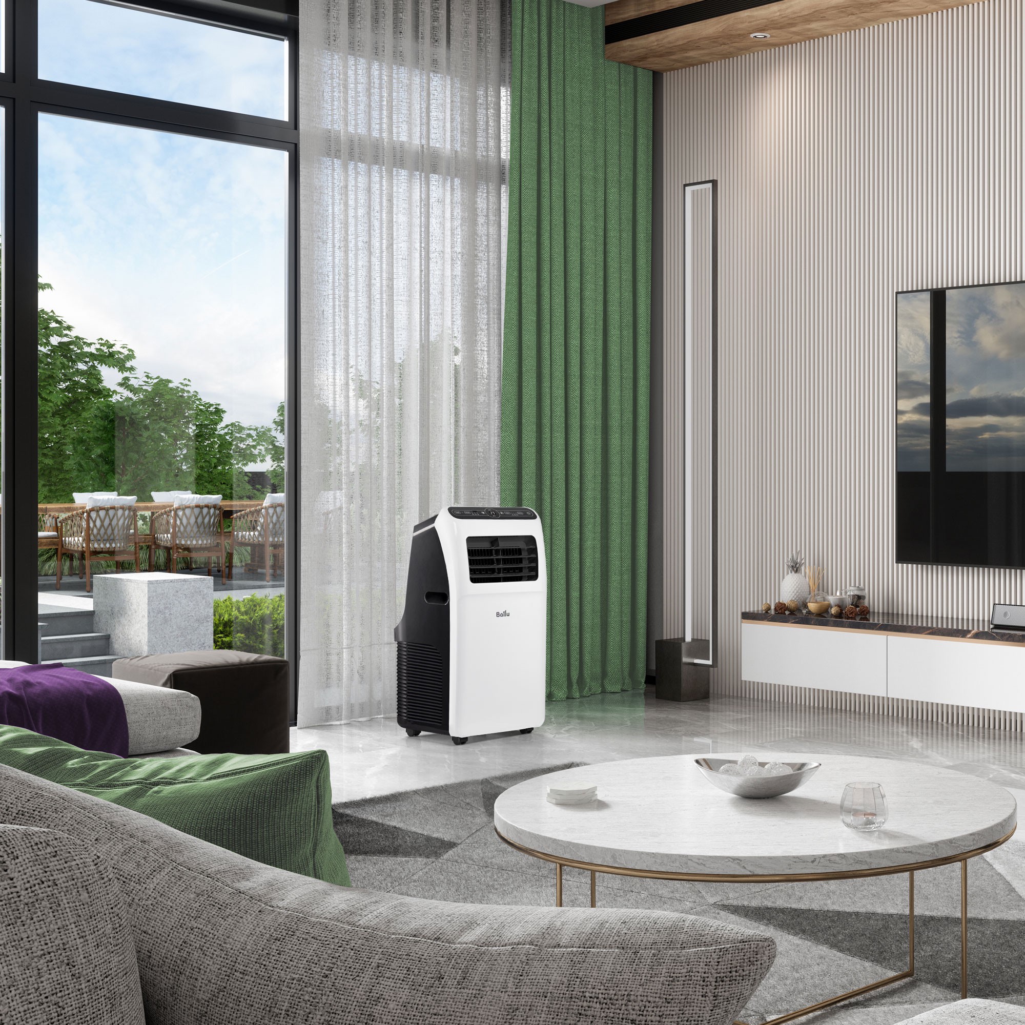 Серия Aura это продвинутые мобильные кондиционеры с расширенным функционалом. Модель BPAC-09 CP/N1_24Y мощностью 3,5 кВт предназначена для охлаждения помещений площадью до 30м2.